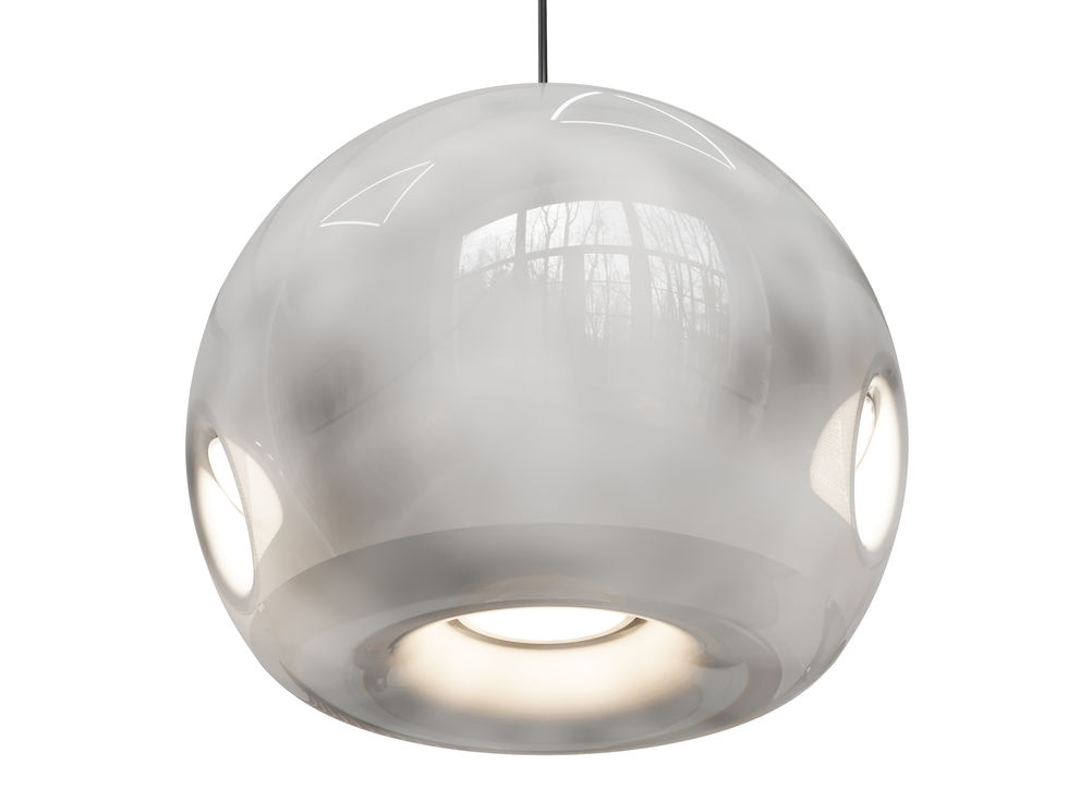 The New Moon Lamp reflects the aesthetic style of the FiPo speaker, by designer Nima Bavardi. The signature transparent globe makes its appearance, this time with multiple craters, and in those craters rest the lighting fitments.